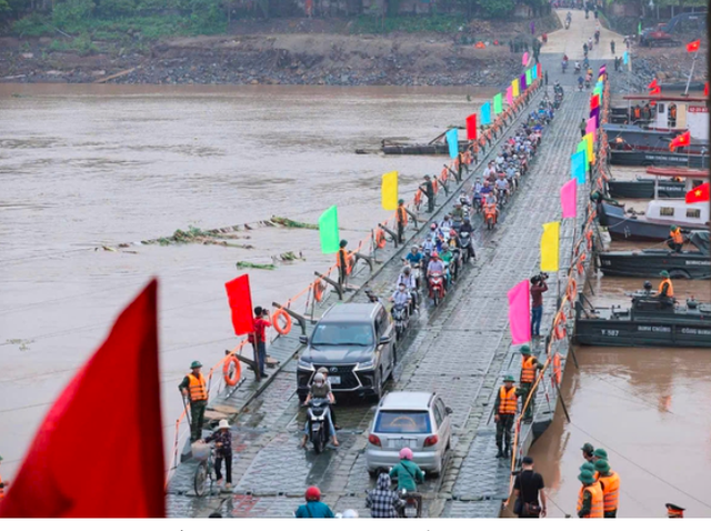 Tuy nhiên, khi tối ngày 1-10 do nước lũ ở thượng nguồn đang đổ về khiến mực nước sông Hồng dâng cao, dòng chảy lớn, Lữ đoàn 249 đã quyết định tạm thời "cắt" cầu phao Phong Châu. Trước tình hình nêu trên, lực lượng quân đội đã tổ chức phà thay thế khi cầu phao khi nước sông Hồng chảy xiết. Đến ngày 6-10, cầu phao được nối lại, hoạt động cho tới sáng nay.