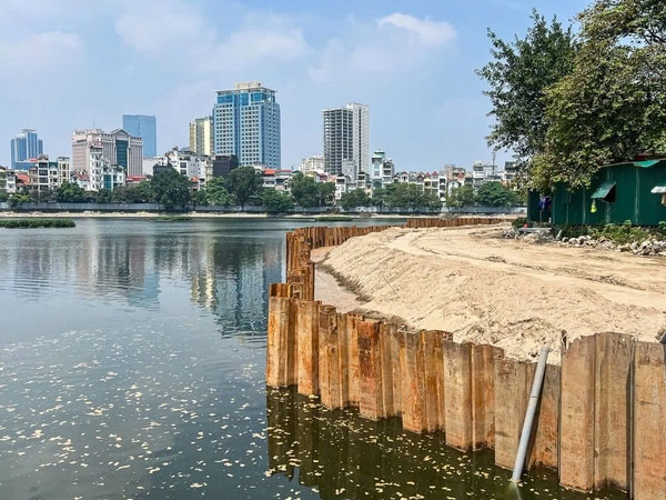 UBND quận Đống Đa vừa ký văn bản gửi UBND TP Hà Nội liên quan yêu cầu kiểm tra thông tin người dân phản ánh việc dùng bê tông không đảm bảo cải tạo hồ Hoàng Cầu.