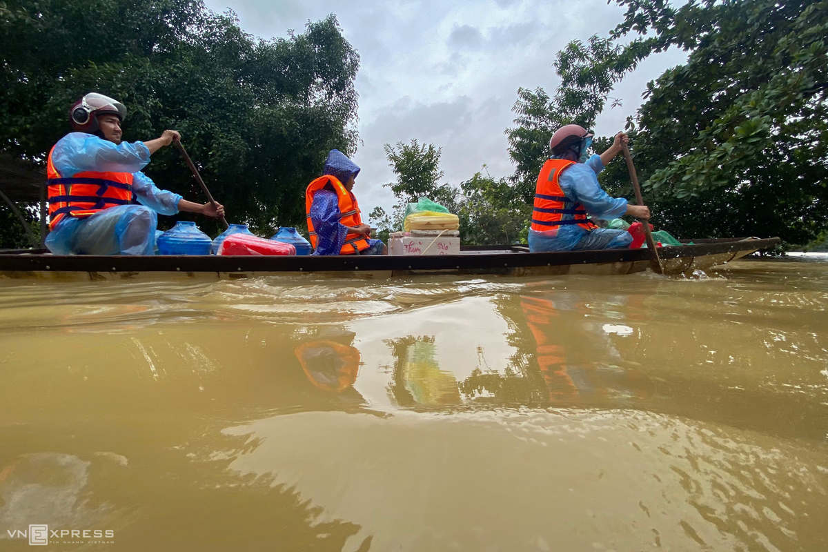"Mẹ nằm đó 5 ngày rồi mà không có tiền thuê đò chở qua vùng khác chôn cất, càng để mẹ nằm đó lâu càng không được. Giờ không biết làm sao. Lũ lên, hàng xóm, bà con ai cũng khổ, lo chạy lũ nên mình không dám vay mượn ai chi mô", chị Lê Thị Trang (28 tuổi) nghẹn ngào.