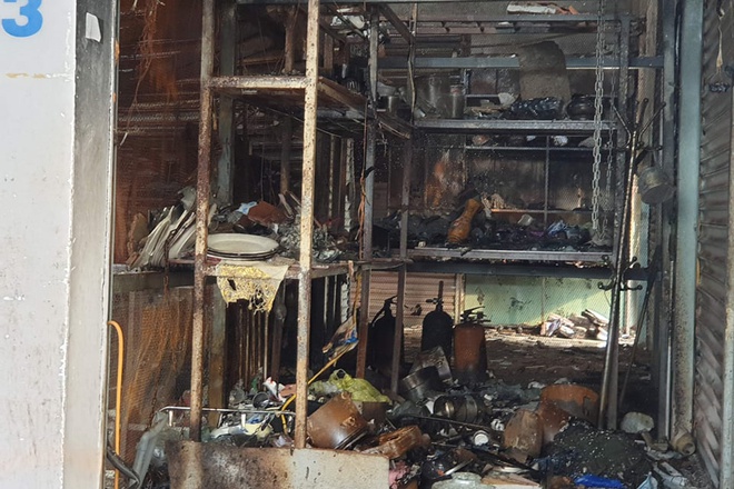 Dù những người có mặt ra sức dập lửa nhưng do các gian hàng ở sát nhau và lại có nhiều đồ dùng dễ cháy, ngọn lửa nhanh chóng bao trùm toàn bộ 96 kiốt nằm trong diện tích khoảng 500 m2.
