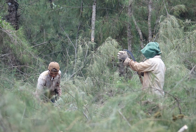 | Một số lao động đang tham gia chặt phá dương. |