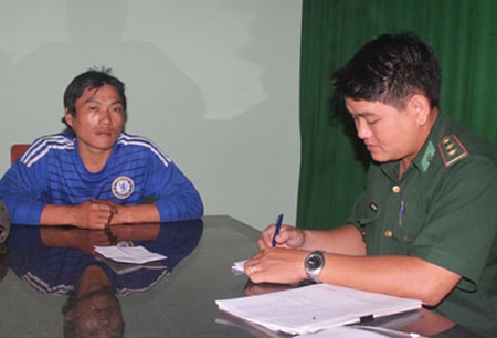 Ngư dân Huỳnh Hà, thuyền viên tàu cá đi trên QNg 90649 Ts đang trình báo với Biên phòng Tịnh Kỳ |