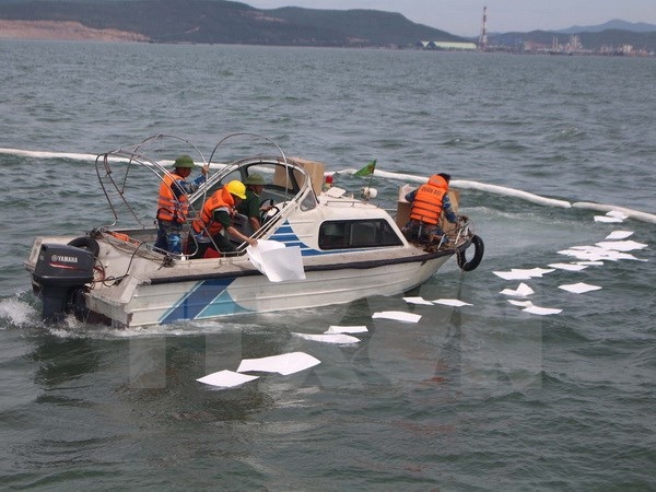 Xử lý dầu tràn trên biển. Ảnh minh họa. (Ảnh: Khiếu Tư/TTXVN) |