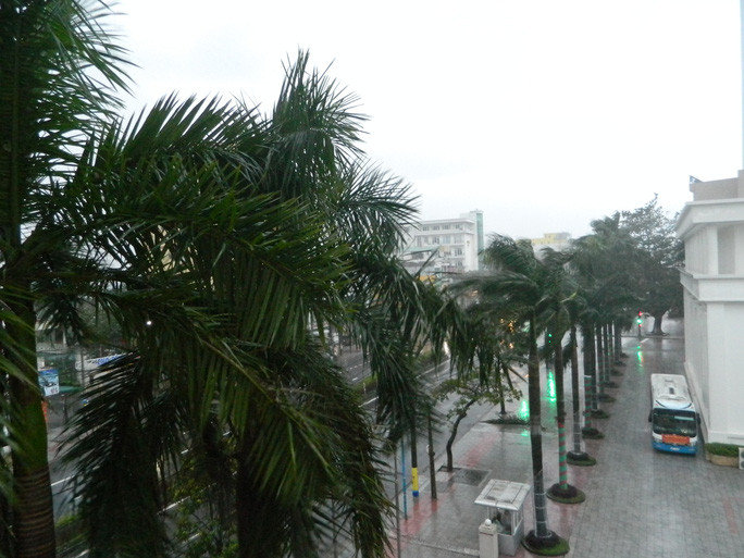 Tại TP Đông Hà, ghi nhận mưa rất nhỏ, gió cũng bắt đầu mạnh dần lên vào 4 giờ sáng nay.