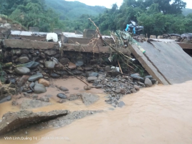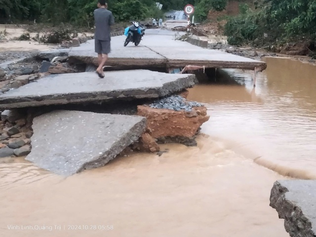 28/10/2024 18:10Quảng Trị: Lũ xé đường bê tông thành từng mảng, tạo hàm ếch nguy hiểm