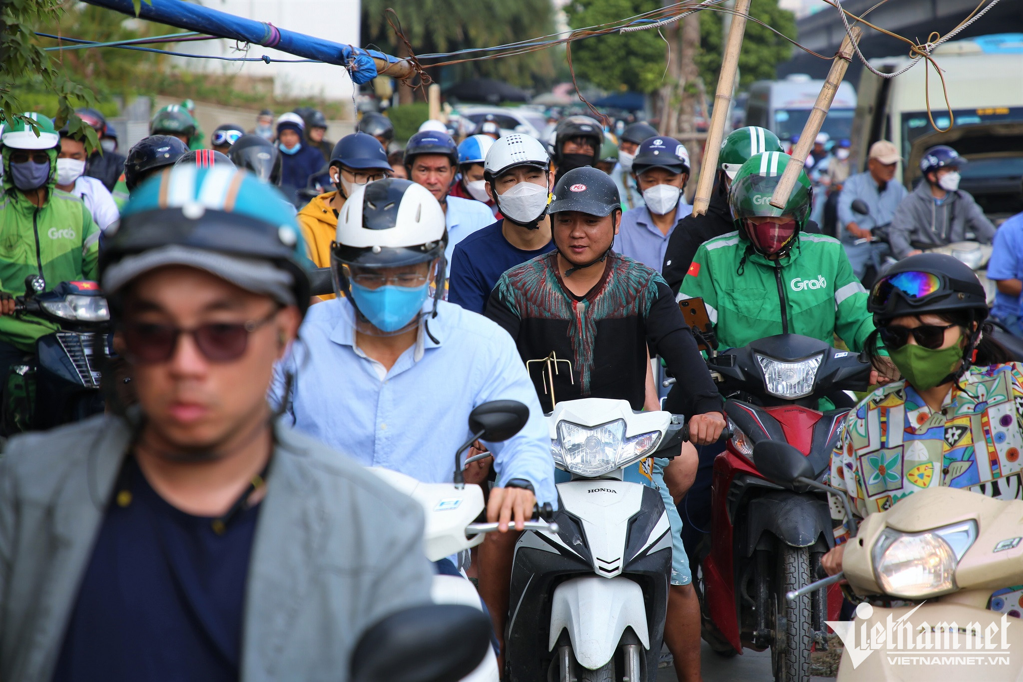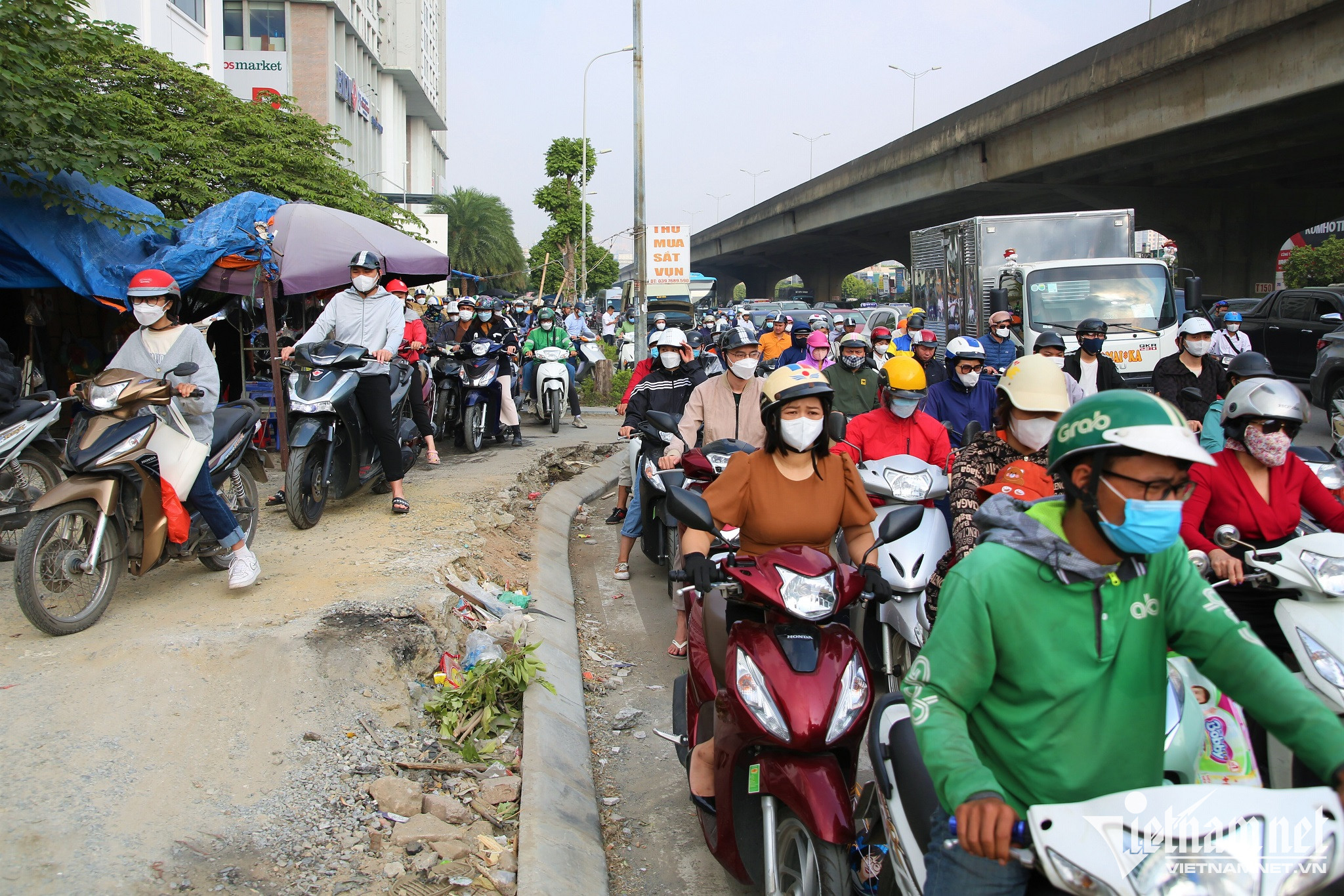 Để thoát ùn tắc, nhiều người đi xe máy đã "phi" lên vỉa hè, nhưng nhiều đoạn vỉa hè cũng bị ùn cục bộ.