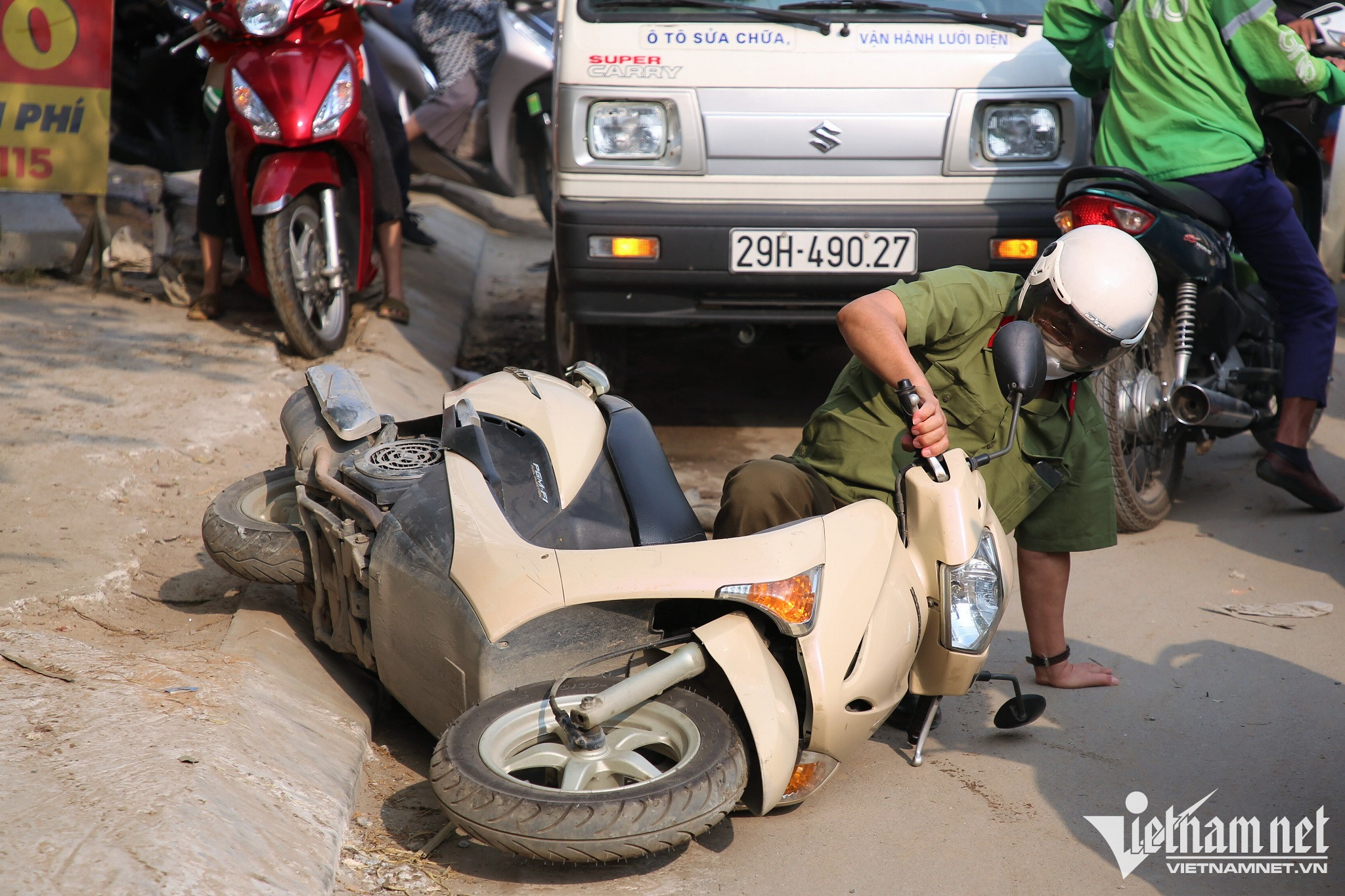 Anh Trần Trung Kiên (Tân Triều, Thanh Trì) cho biết, ngày bình thường để đi quãng đường hơn 1 km này chỉ mất khoảng 10 phút, nhưng hôm nay mất 30 phút mới qua được "lô cốt".