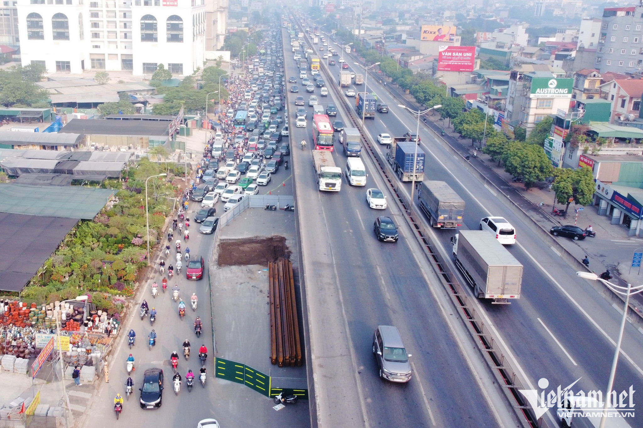 07/11/2022 17:56Quây lô cốt chiếm nửa đường Nguyễn Xiển, ùn tắc kéo dài gần 1km