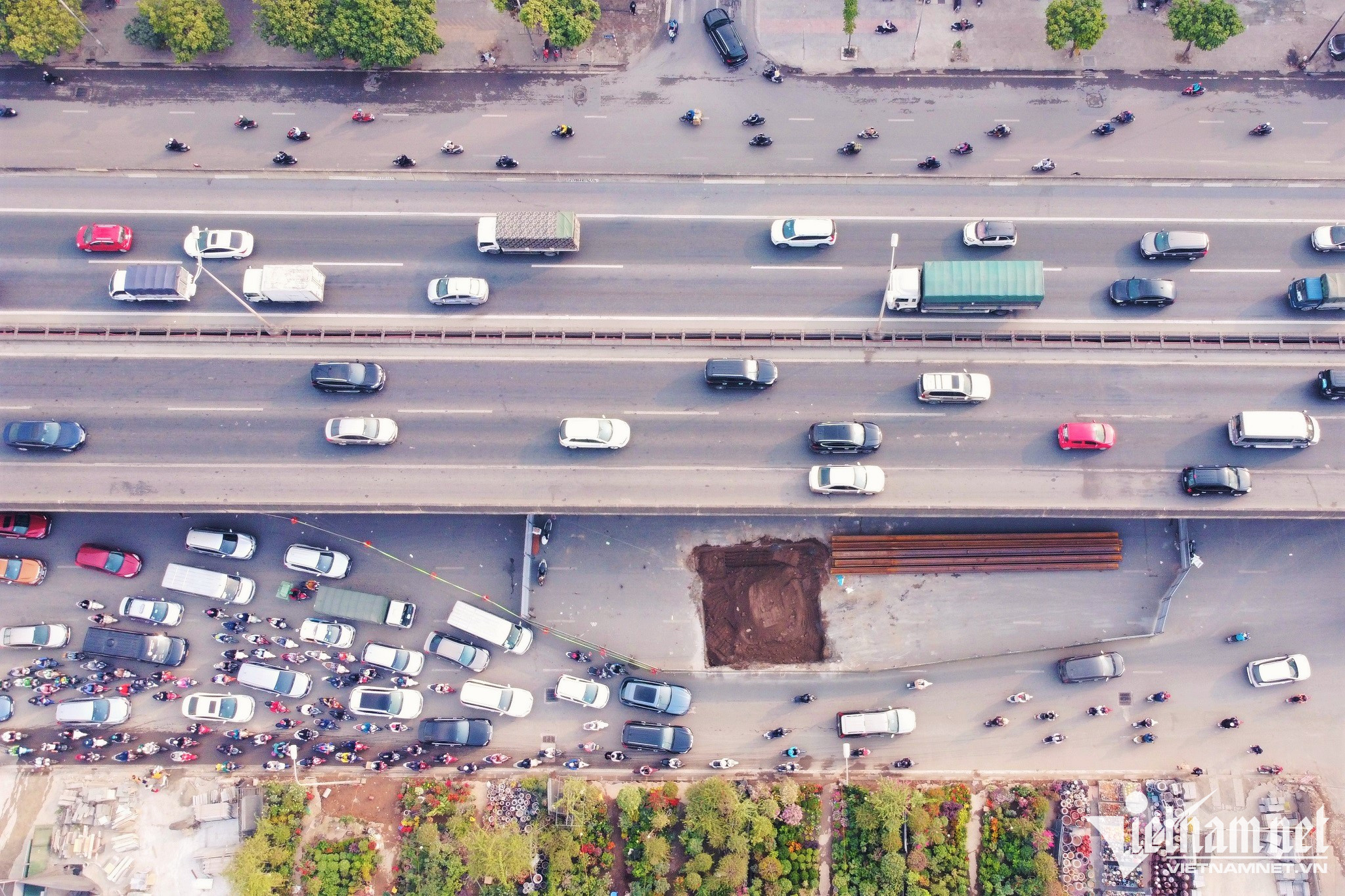 Cũng theo ghi nhận, mặc dù Đội Cảnh sát giao thông đường bộ số 7, Phòng CSGT Công an Hà Nội đã cử lực lượng ứng trực, phân luồng từ sớm nhưng tình trạng ùn tắc không được giải quyết.