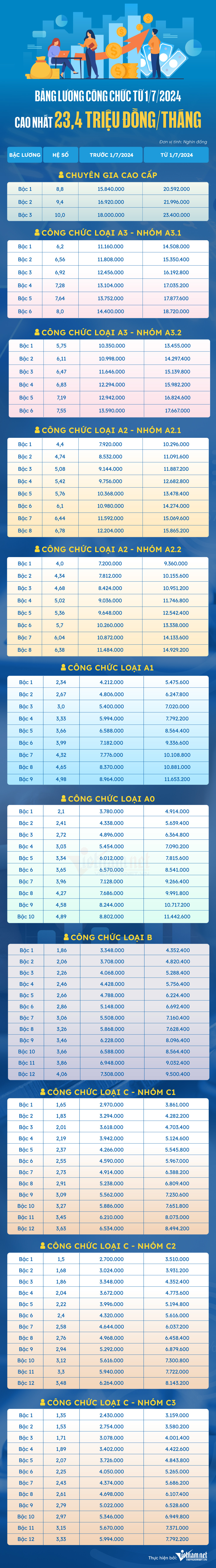 Chi tiết bảng lương công chức từ 1/7/2024: