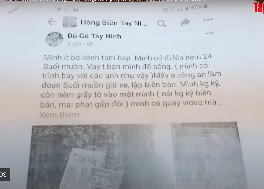 Nội dung cụ thể như sau: "Mình ở bờ kênh Tam Hạp. Mình có đi hẻm 24 Suối Muồn, vay tiền bạn mình để sống. Mình có trình bày với các anh như vậy. Mấy anh công an làm đoạn Suối Muồn giữ xe, lập biên bản. Mình không ký, còn ném giấy tờ vào mặt mình, nói không ký biên bản, mai phạt gấp đôi, mình có quay video mà…"