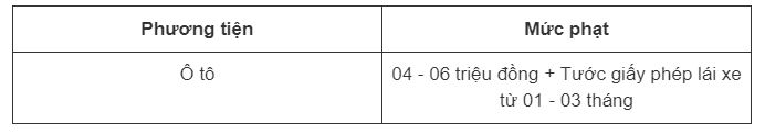- Vi phạm các lỗi khác (quá khổ, trọng tải xe…).