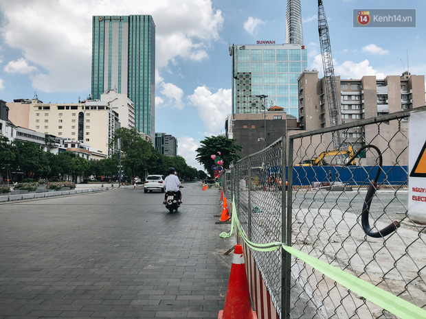 Sáng ngày 24/4, rào chắn tôn của công trình Metro số 1 (Bến Thành - Suối Tiên) trên đường Lê Lợi, đoạn tiếp giáp với phố đi bộ Nguyễn Huệ (quận 1) đã được tháo dỡ.