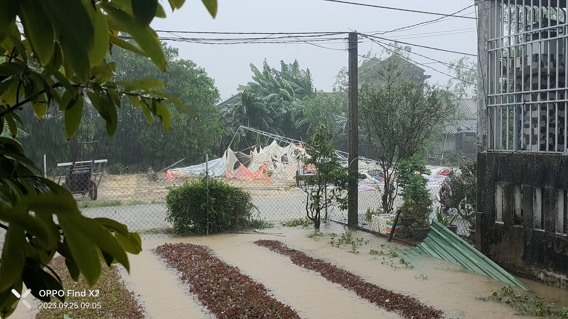 Trước đó, vào sáng 25/9, một cơn lốc đã cuốn bay toàn bộ rạp cưới ở thôn Tây Thành, xã Quảng Thành, huyện Quảng Điền, Thừa Thiên - Huế trước sự níu kéo đầy bất lực của gia chủ.