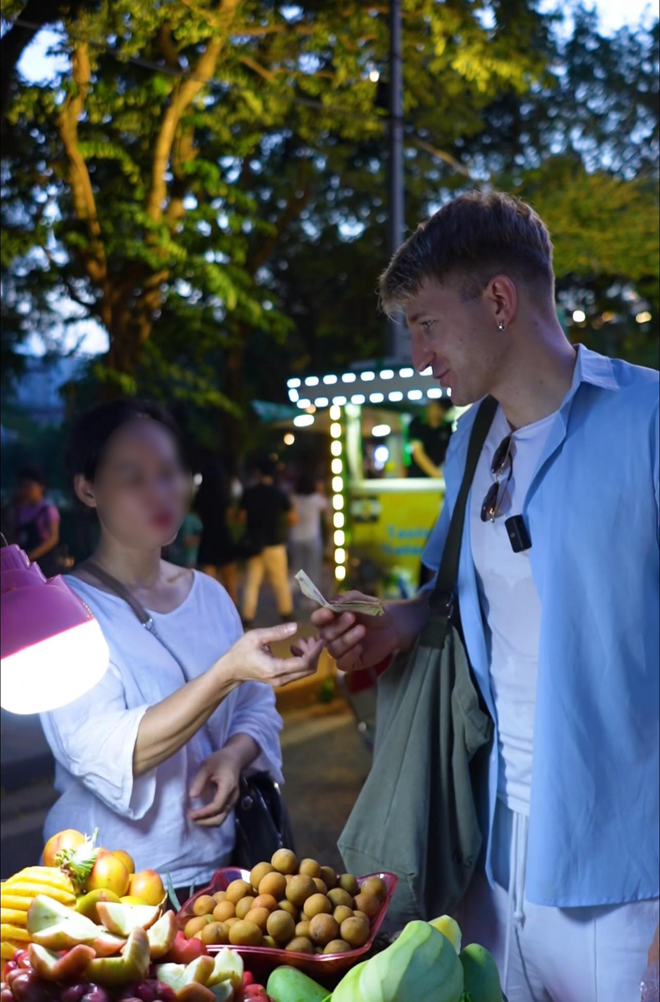 Khách Tây lấy tiền ra trả rồi nói thêm: "Chị ơi còn 30 nghìn, mặc cả một chút được không?". Người bán hàng rong có chút ngập ngừng rồi gật đầu trong sự miễn cưỡng.