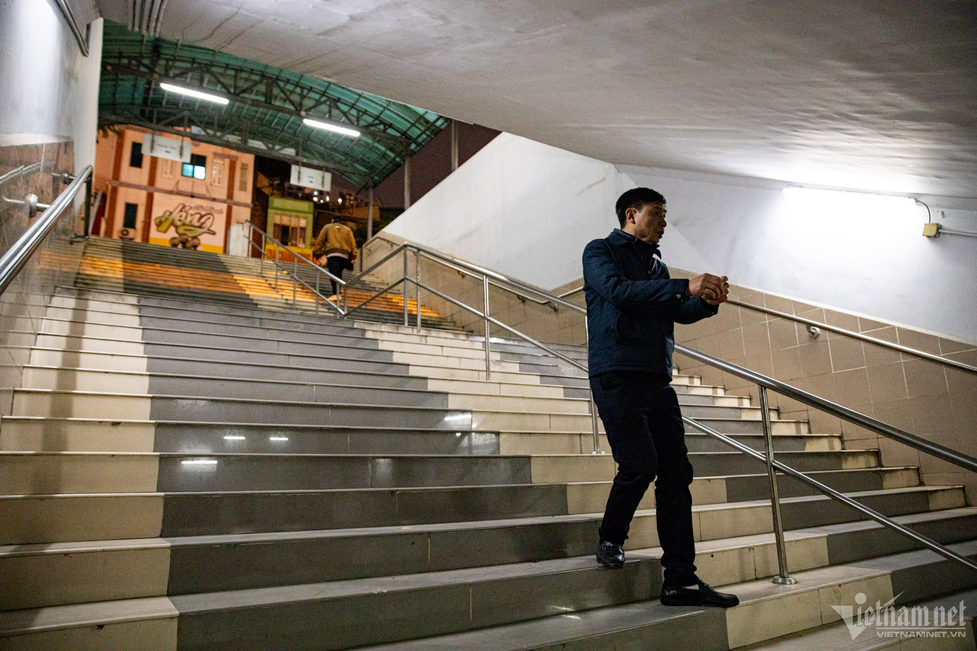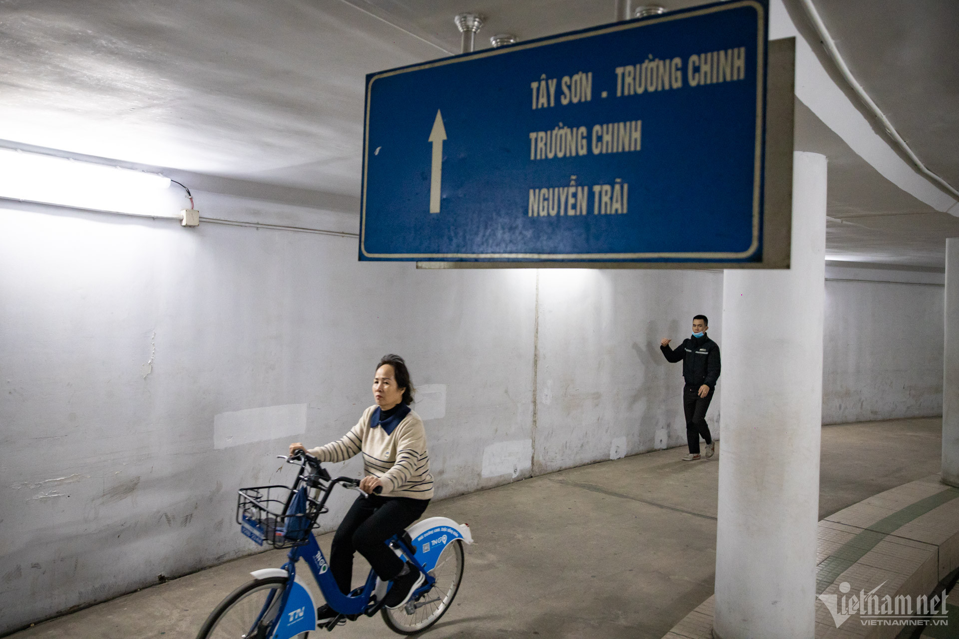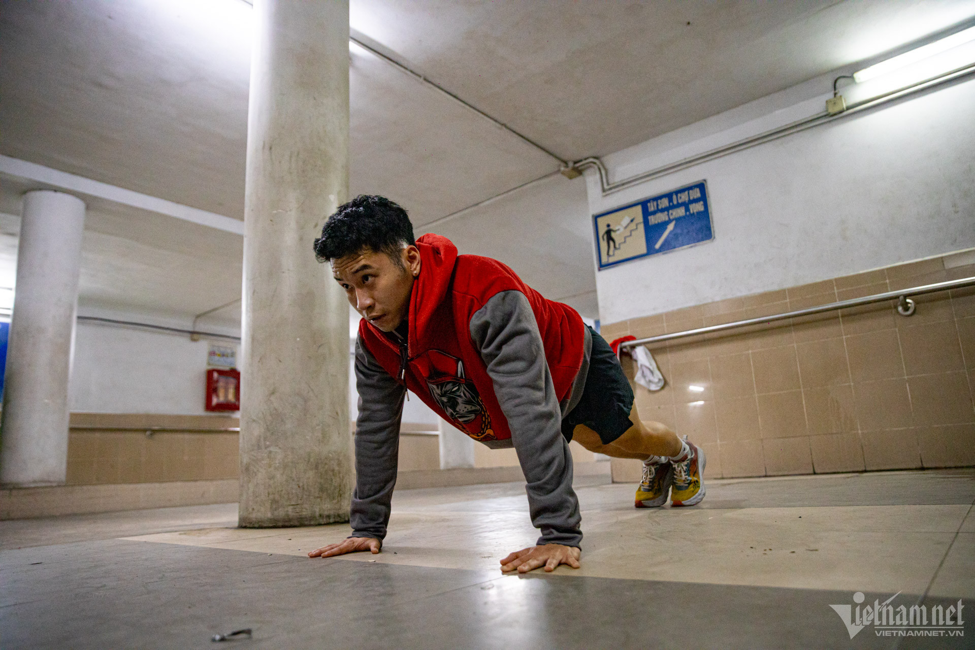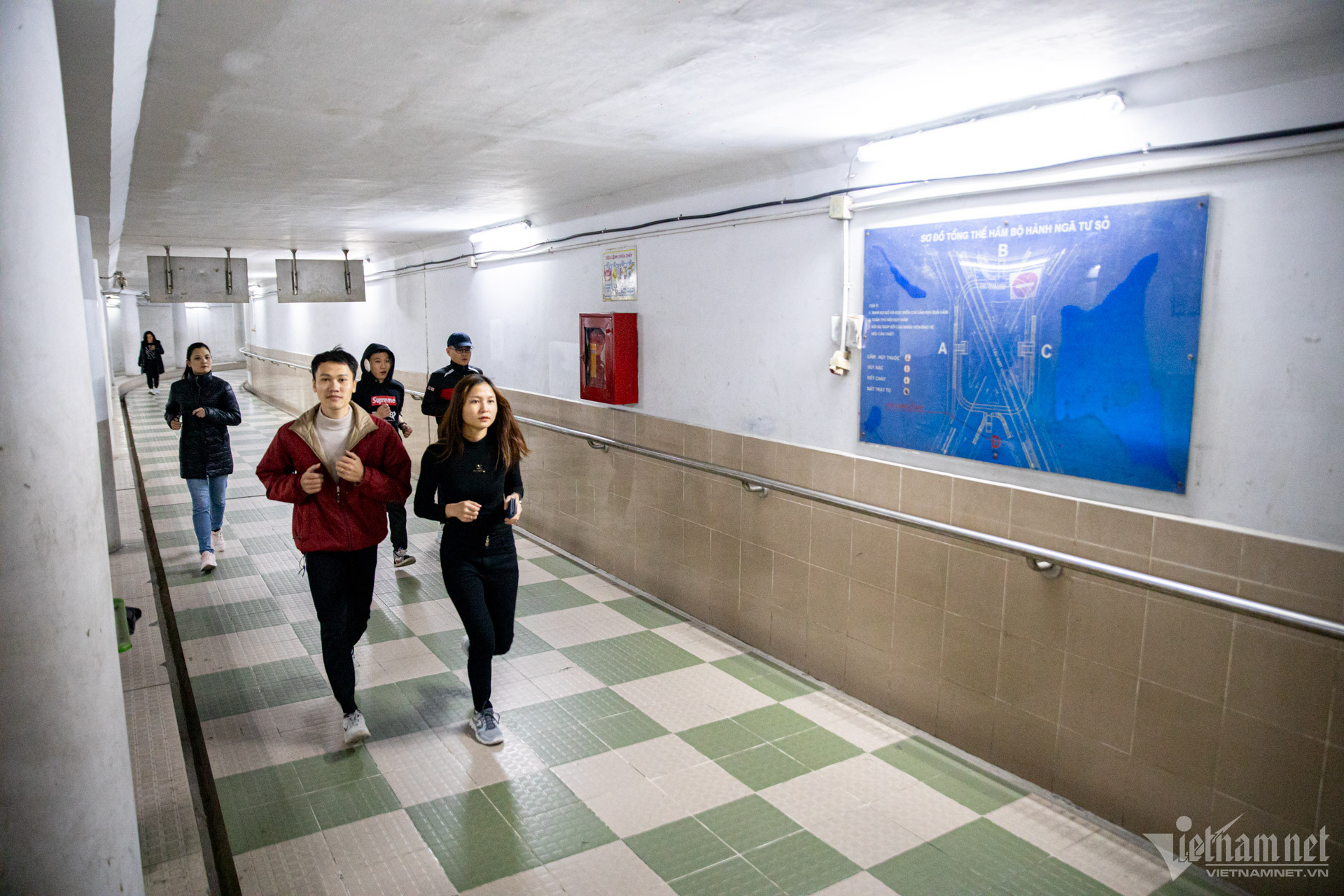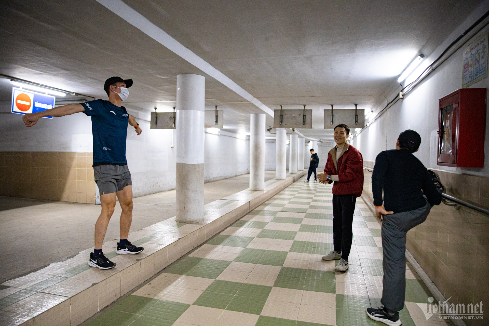 Những ngày Hà Nội lạnh dưới 9 độ C, hầm bộ hành Ngã Tư Sở trở thành địa điểm tập thể dục lý tưởng. Nhiều người tới hầm trong trang phục gọn ghẽ, thoải mái để chạy bộ, hít đất, nhảy dây...