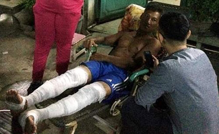 Anh Phi vào giúp chị Trang lấy giấy tờ cũng bị bỏng nặng ở hai chân. Ảnh: Hải Hiếu |