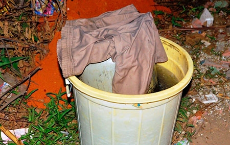 Bình gas 12 kg được bỏ váo thùng nước lớn. Ảnh: Hải Hiếu |
