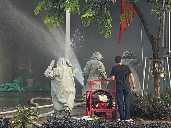 Ngay sau đó, lực lượng chức năng đã được huy động đến hiện trường. Cảnh sát PCCC và lực lượng quân đội phải mặc đồ bảo hộ, đeo mặt nạ chống độc vào bên trong để xử lý sự cố.