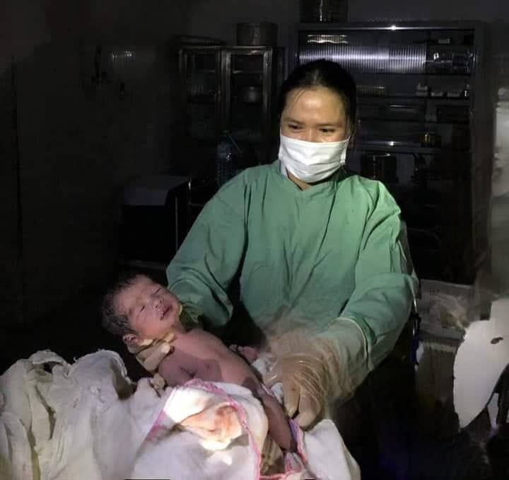 “Vì mất điện nên 4 người trong ê kíp mỗi người mỗi việc, người dọi đèn, người động viên sản phụ, người đỡ đẻ. Khoảng 30 phút sau, sản phụ sinh đứa đầu tiên, ê kíp kiểm tra và cho sản phụ sinh tiếp. 15 phút sau, sản phụ sinh đứa thứ 2, lúc ê kip lấy nhau thì phát hiện thêm một bọc ối nữa nên tiếp tục động viên sản phụ. 15 phút sau đứa thứ 3 ra đời.