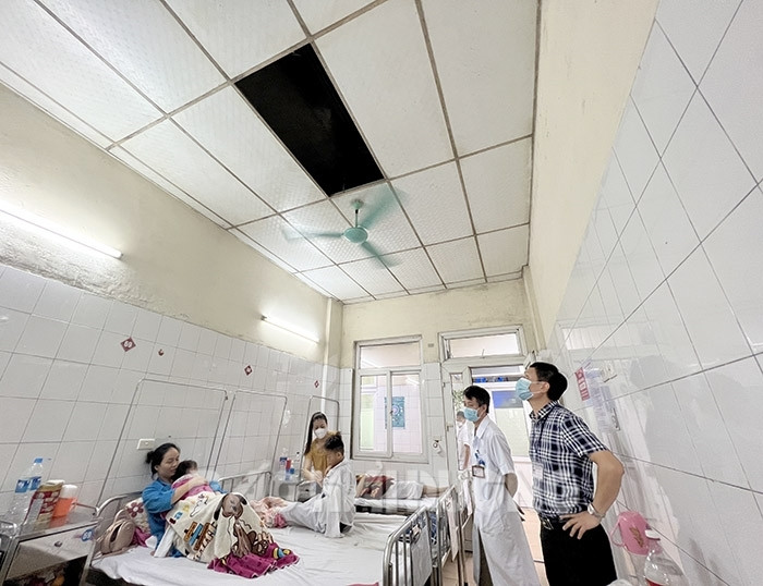 Lãnh đạo bệnh viện cho biết, nguyên nhân ban đầu do trận mưa lớn tối hôm trước khiến phòng bệnh bị dột, nước mưa ngấm vào làm tấm thạch cao bị rơi xuống