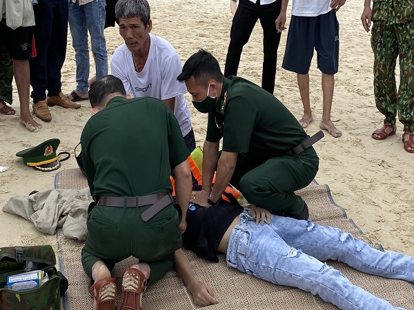 Lập tức, Ban chỉ huy Đồn BP cử 10 cán bộ, chiến sĩ và quân y đến hiện trường, phối hợp với nhân viên quản lý bãi tắm vượt sóng lớn, tổ chức tìm kiếm và cứu hộ thành công 4 nạn nhân đưa lên bờ.