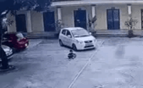 Theo clip đăng tải, trong khoảng sân rộng nữ tài xế lên xe ô tô màu trắng chuẩn bị điều khiển ra ngoài. Cùng lúc, bé trai cũng ra khu vực gần giữa sân vui chơi.