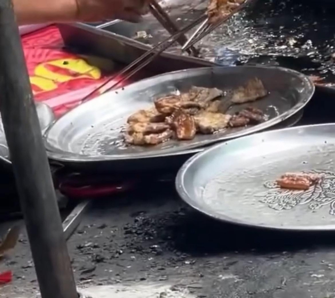 | Rùng mình clip quán bún chả nhúng thịt xuống nước than, nước mỡ rồi đặt lên vỉ nướng tiếp |