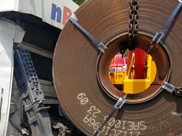 Lực lượng chức năng đã có mặt tại hiện trường, 2 xe cẩu lớn cũng được huy động để khắc phục sự cố, cẩu cuộn sắt đưa đi.