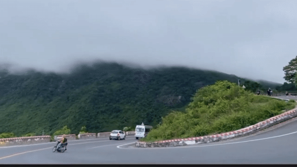 Theo hình ảnh đoạn clip ghi lại, cho thấy nam “phượt thủ” chạy xe máy trên đèo Hải Vân hướng Đà Nẵng qua địa phận tỉnh Thừa Thiên - Huế.
