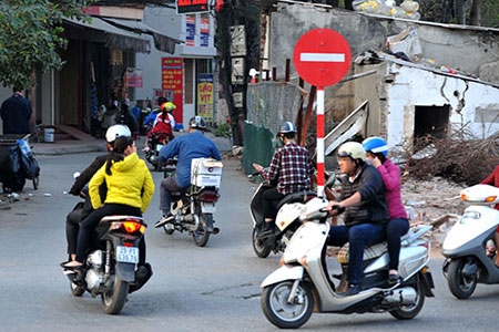 Thế nhưng vào các khung giờ cao điểm trong ngày, hàng loạt xe máy ngang nhiên nối đuôi nhau đi ngược chiều với tốc độ cao, khiến các phương tiện lưu thông ở chiều ngược lại phải đột ngột giảm tốc, hoặc phanh gấp để tránh va chạm.