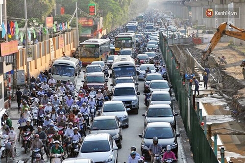 Theo chị Lan, trước khi chưa xây dựng đường sắt trên cao thì giao thông ở đường Nguyễn Trãi vẫn bình thường, tuy đông nhưng ít khi xảy ra ùn tắc nghiêm trọng. “Còn bây giờ thì hầu như ngày nào cũng tắc, nhất là đi qua những lô cốt đang xây dựng, rào chắn chiếm tới nửa đường. Nhiều hôm dậy sớm lo cho các con ăn uống sớm còn đến cơ quan, nếu không bị tắc đường đến muộn lại bị nhắc nhở. Tôi mệt nhất những ngày nắng nóng lúc chen chúc mùi xăng xe bốc lên không thở nổi”, chị Lan chia sẻ thêm.