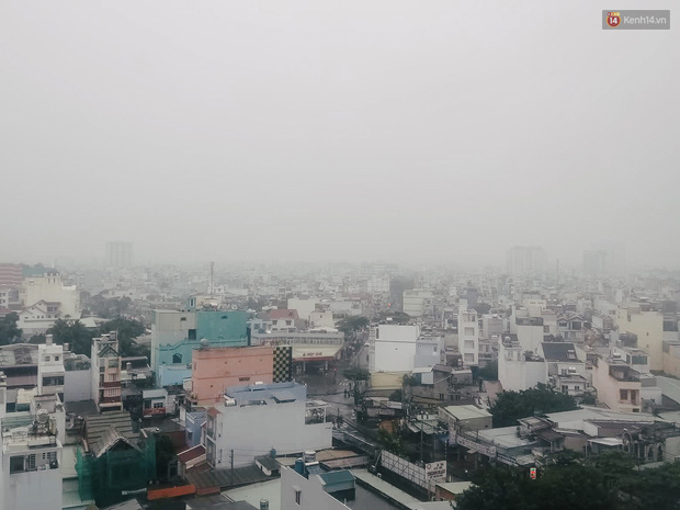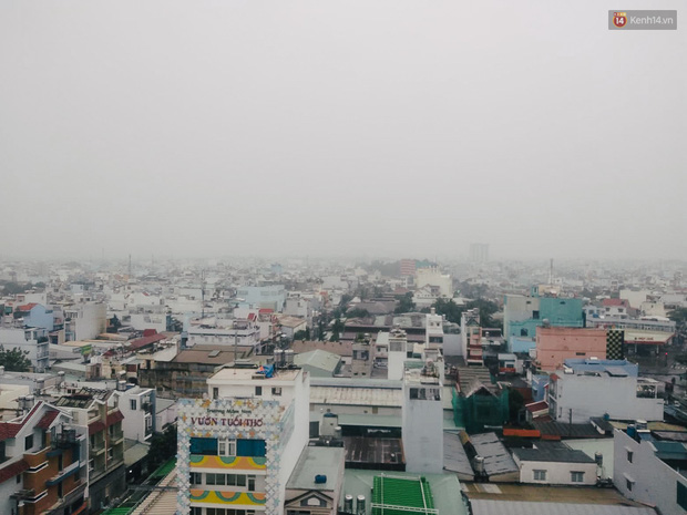 Đến trưa ngày 22/9, thời tiết khu vực TP.HCM vẫn khá âm u, trời không nắng, nhưng vẫn kèm theo đó là lớp màu trắng đục bao phủ khắp nơi.