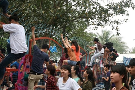 Cảnh trèo rào cực kỳ hỗn loạn tại công viên nước Hồ Tây chiều hôm qua |