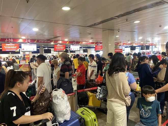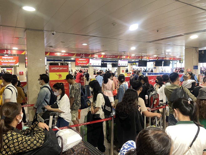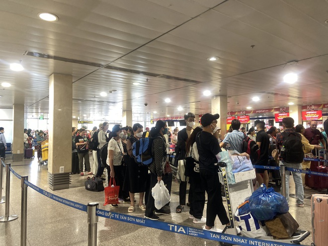Ghi nhận tại khu vực làm thủ tục của một số hãng hàng không nội địa, hành khách phải xếp hàng dài. Mặc dù đông đúc hành khách nhưng không xảy ra tình trạng chen lấn quá tải.