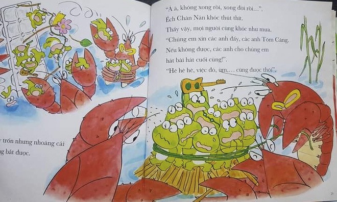 Nhà nghiên cứu giáo dục Nguyễn Quốc Vương trên facebook cá nhân chia sẻ: Ai đã từng đọc truyện Ehon 10 chú ếch hay "Pao và các bạn" thì sẽ thấy trong hai bộ sách tranh đó cũng có những câu chuyện liên quan đến xung đột như bọn tôm càng ở đầm lầy chuyên rình mò để bắt và ăn thịt 10 chú ếch. Tuy nhiên, để đối phó lại 10 chú ếch chỉ né tránh, tìm đường khác để đi hoặc chạy trốn. Thậm chí có một lần bọn tôm càng tóm được các chú sắp ăn thịt đến nơi nhưng rồi các chú cất tiếng hát làm cho tôm càng lăn ra ngủ thế là thoát.