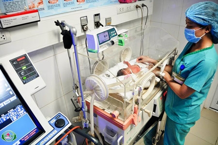 Bé gái sơ sinh đang được chăm sóc tại Bệnh viện đa khoa Nghệ An. Ảnh: Hoàng Yến. |