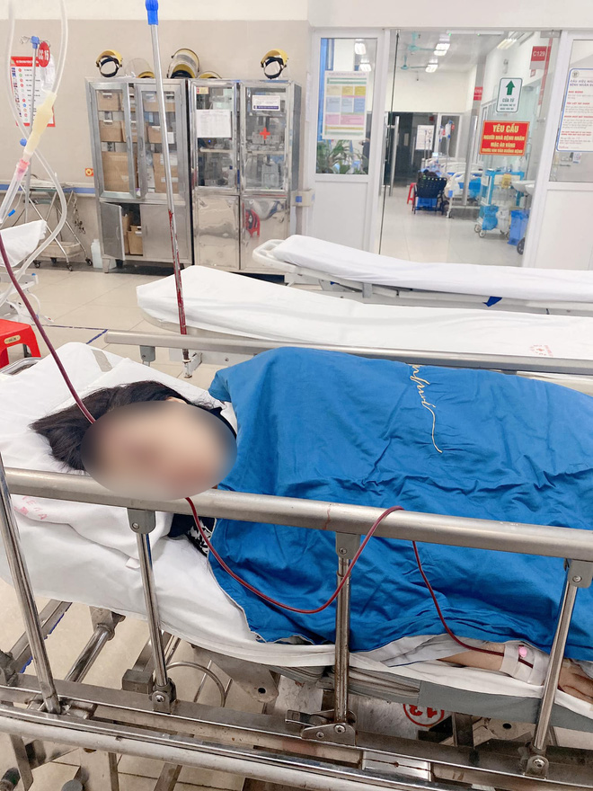 Anh V. kể, chiều 15/11, chị H. cảm thấy trong người không được khỏe, được đưa vào Bệnh viện Thanh Nhàn thăm khám. Sau khi vào khoa Cấp cứu nội và được lấy máu xét nghiệm, các bác sĩ kết luận tiểu cầu và hồng cầu của sản phụ rất thấp, cần phải truyền máu. Chị H. được truyền 2 túi máu và 2 túi tiểu cầu trong đêm, sức khỏe đỡ hơn và có thể nói chuyện.