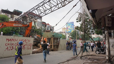 Cần cẩu sập tại công trường dự án đường sắt đô thị Nhổn-ga Hà Nội. |