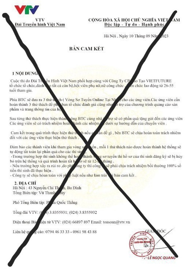Trong trường hợp này, đối tượng lừa đảo lập trang trang Facebook đưa thông tin giả phối hợp với VTV, Hội Liên hiệp Phụ nữ Việt Nam tổ chức cuộc thi “Duyên dáng áo dài dân tộc” nhân dịp 20/10 để thu hút phụ nữ tham gia.