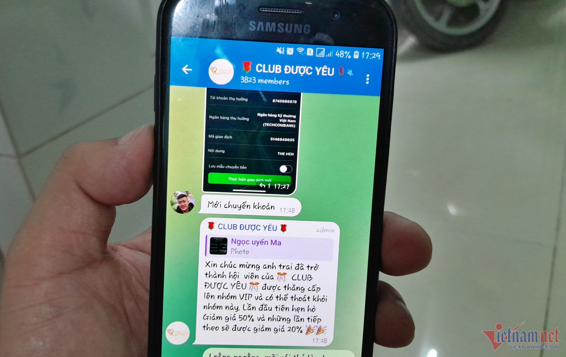 Tôi hỏi cách làm thẻ và được bé giới thiệu trò chuyện với một người khác. Người này hướng dẫn chi tiết, yêu cầu tôi nộp tiền để mở thẻ thành viên và kích hoạt tài khoản".