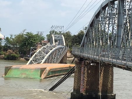 Hậu quả, nhịp cầu số 3 chìm xuống nước, một nhịp cầu khác bị gãy, chìm một đầu xuống sông. Có 3 xe máy vướng lại trên nhịp cầu số 3 nhưng may mắn cả 3 người đi xe máy đều kịp thoát. Hai tài công điều khiển sà lan đã nhảy xuống sông bơi vào bờ, hiện đang bỏ trốn