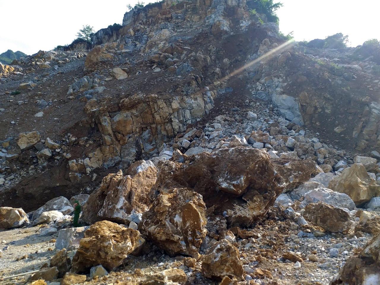 Thông tin ban đầu, 2 công nhân trên đang làm nhiệm vụ kiểm tra an toàn và cạy những khối đá rời sau nổ mìn thì bất ngờ đá lở. Phát hiện vụ việc, cơ quan chức năng và người dân đưa được anh Giàng Dũng L. ra khỏi hiện trường và đưa đi cấp cứu, còn anh Đặng Anh T. ở vị trí cao hơn nên khó khăn cho công tác tìm kiếm.