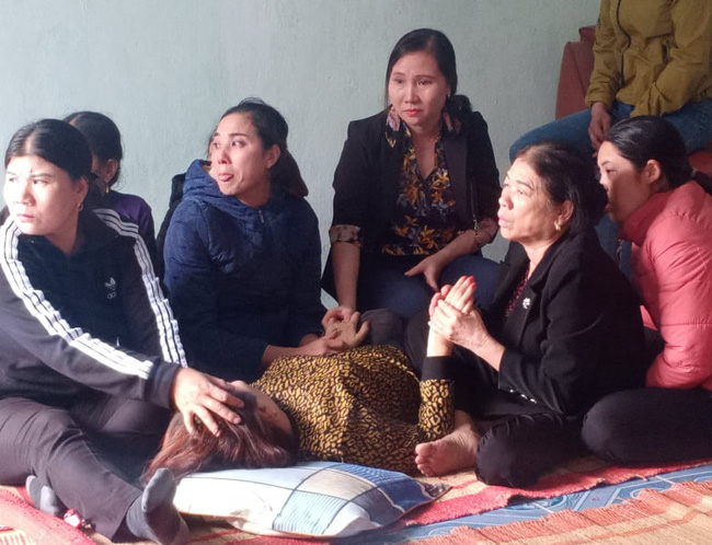 Từ lúc nghe tin chồng gặp nạn, chị Đào Thị Bích (48 tuổi, vợ anh Toản) ngã quỵ. Chị nằm lả trên chiếc chiếu trải trên nền nhà, luôn miệng gào khóc, gọi tên chồng trong tuyệt vọng.