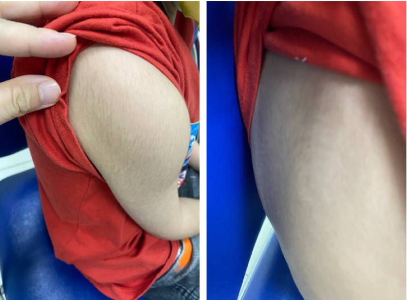Tuy nhiên, khoảng 1 tháng trở lại đây, toàn thân bé H xuất hiện tình trạng mọc lông rậm bất thường, đặc biệt ở các vùng mặt, vai, cánh tay, lưng và chân. Lo lắng nên mẹ bé H đã đưa con đi khám.