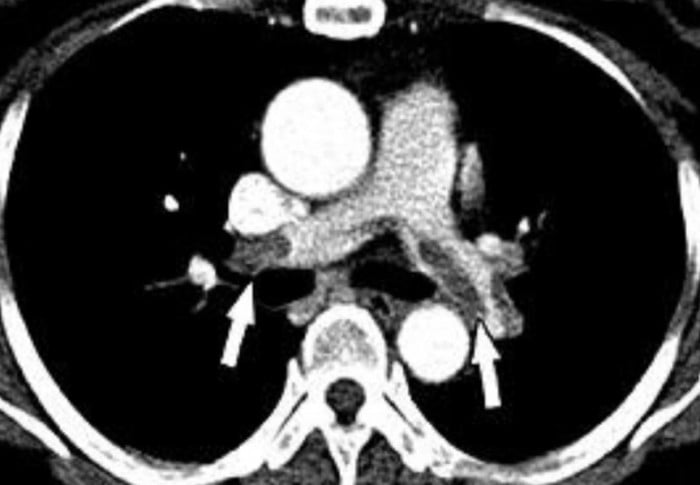Theo báo cáo, bệnh nhân ban đầu hồi phục bình thường nhưng chỉ sau khoảng 48 giờ xuất hiện khó thở, tụt huyết áp, giảm oxy máu. Ban đầu, ê-kíp nghi ngờ phản vệ độ 3, tuy nhiên kết quả thăm khám và cận lâm sàng cho thấy người phụ nữ bị thuyên tắc mỡ và thuyên tắc phổi do mỡ - một biến chứng cực kỳ nguy hiểm của hút mỡ.
