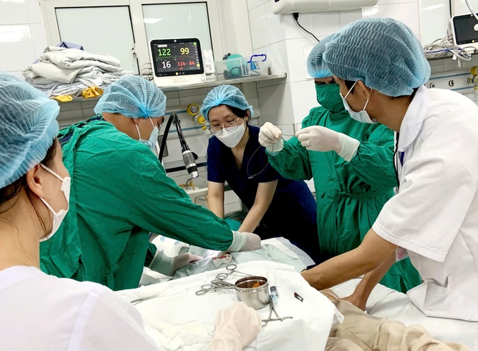 Tại bệnh viện, bác sĩ xác định bệnh nhân hôn mê sâu, mất nhịp thở tự nhiên, dịch hồng lẫn máu trào qua ống nội khí quản - dấu hiệu của phù phổi và xuất huyết phế nang nghiêm trọng.