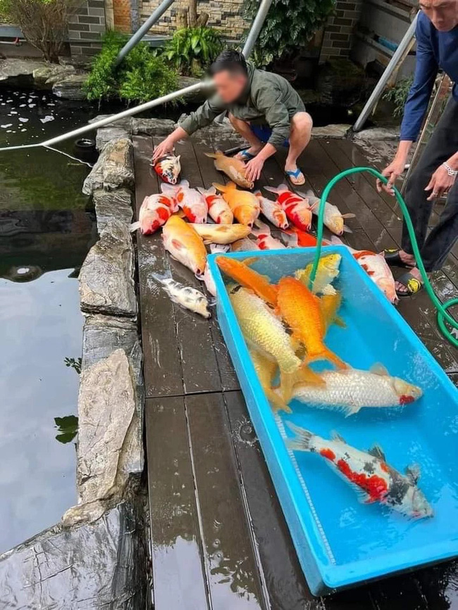 Của đau con sót, chủ nhân của bể cá Koi dù cố gắng tìm mọi cách cứu những con còn sót lại nhưng số lượng cá đã chết vẫn lên tới 26 con.