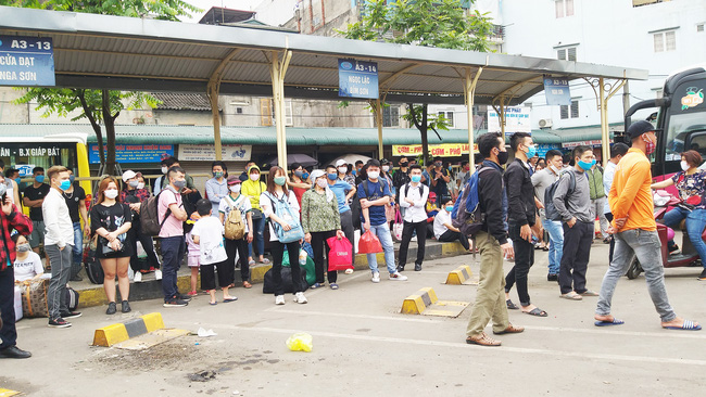 Bà Mai (quê ở Triệu Sơn, Thanh Hóa) chia sẻ: "Trong suốt thời gian từ Tết đến nay cả gia đình tôi không ai về quê, bởi vì Hà Nội đang trong thời gian cách ly. Hôm nay nhân tiện nghỉ lễ và hết thời gian cách ly xã hội thì cả nhà cùng về. Hầu hết những người đang đợi xe đều có chung tâm trạng khát khao được về quê như chúng tôi".