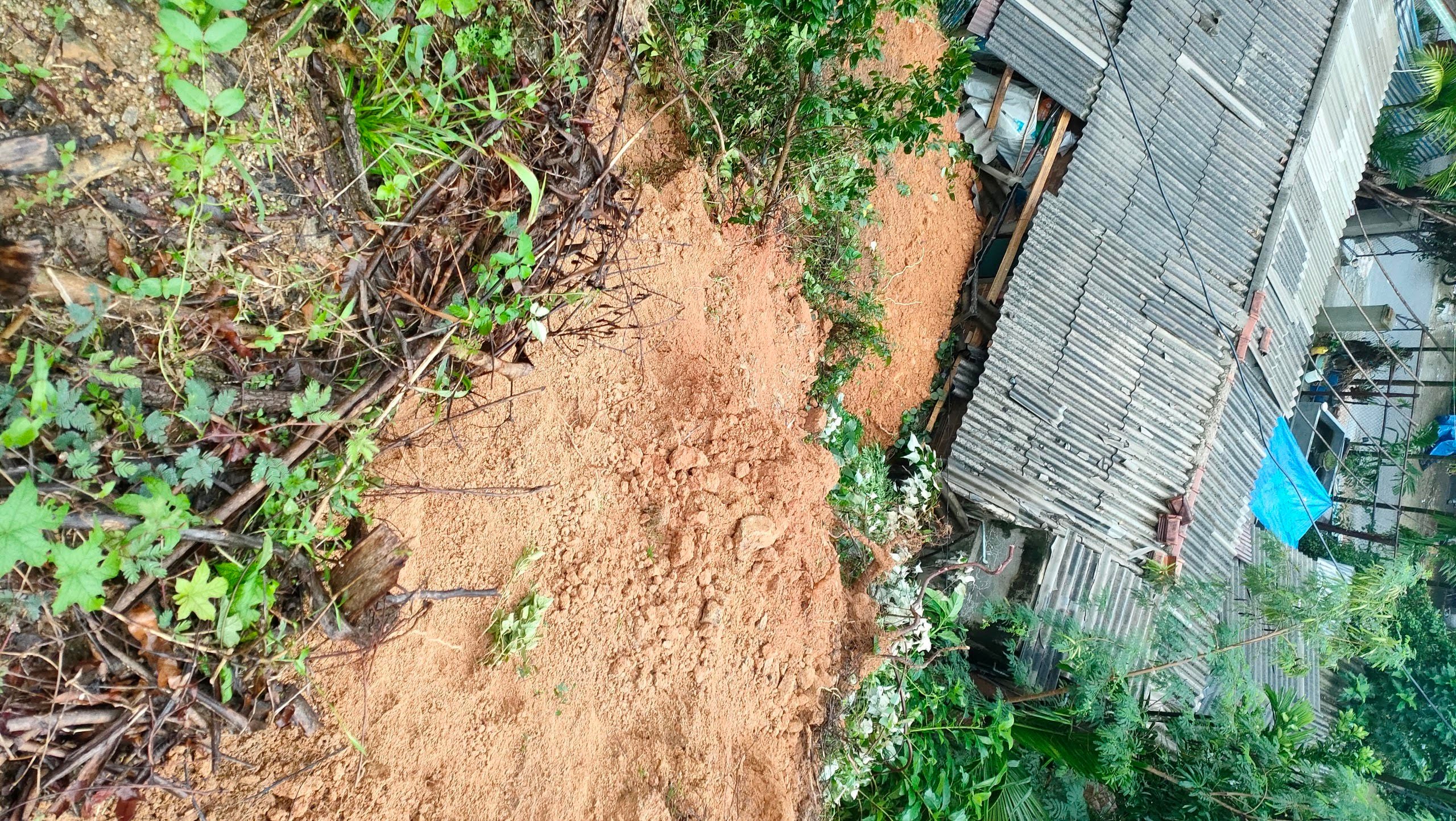 Hiện khu vực đồi núi sau lưng nhà ông Tú tiếp tục xuất hiện nhiều mảng đất đá nứt nẻ, khối lượng đất đá này có thể ập xuống nhà dân bất cứ lúc nào.